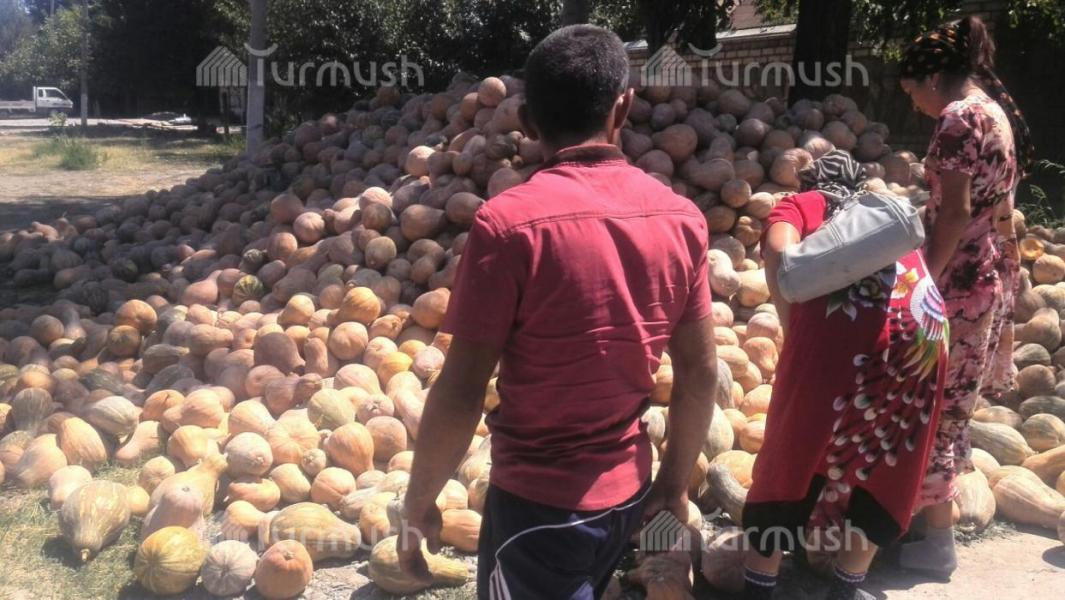 Жизнь в регионах: Житель Базар-Коргона А.Курбанов планирует заработать на выращивании тыквы не менее 600 тыс. сомов (фото)