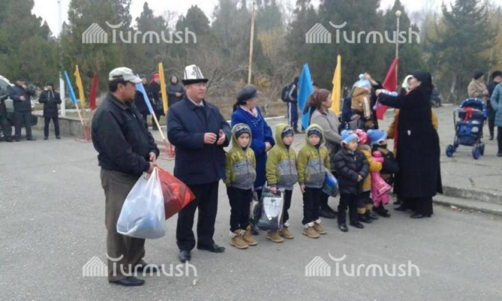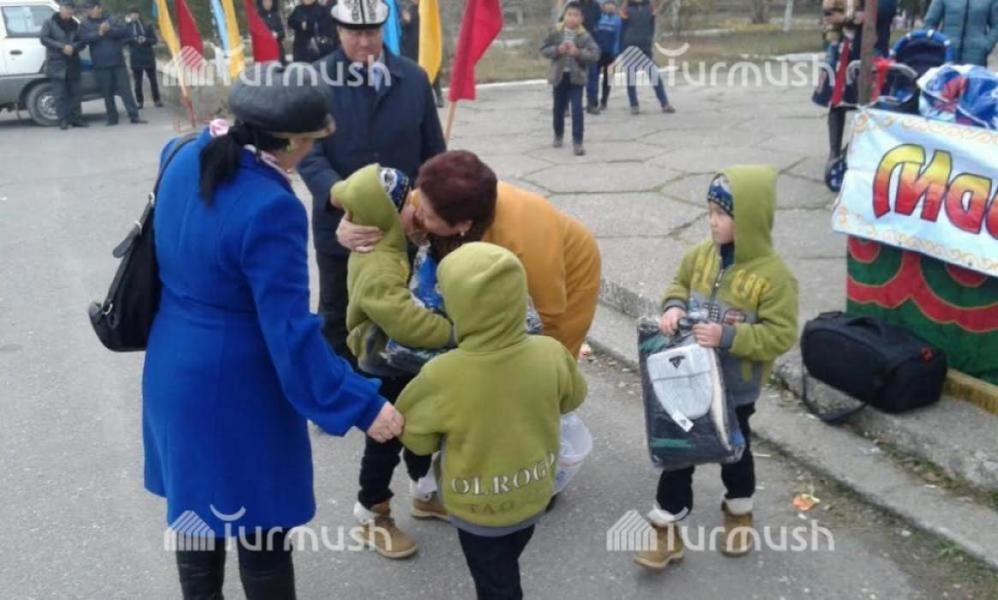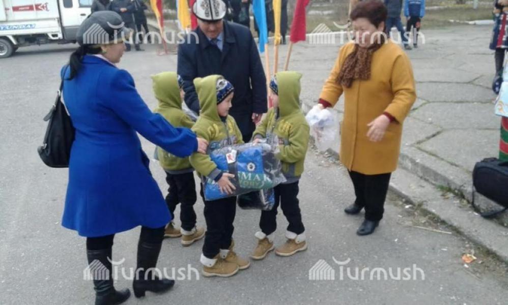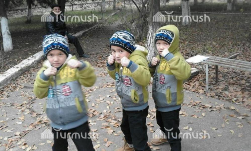 Фото — Семье 7-летних тройняшек из Жалал-Абада передали зимнюю одежду