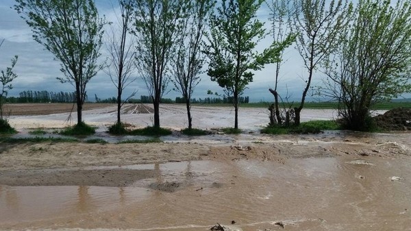 Фото — В 2 сельских округах Ноокенского района из-за повышения уровня воды в реке Кара-Ункур затопило посевные поля (добавлено видео)